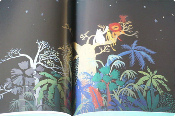 사냥한 먹이를 골고루 나눠먹은 후 대자로 누운 모습이 너무 귀엽네요. 그리고 정글 친구들은 자신들이 가장 좋아하는 장소로 북극곰을 데리고 가서 별을 바라보면 이야기를 나누고, 북극곰은 고향의 빙산과 푸른 바다 이야기를 들려주었어요.