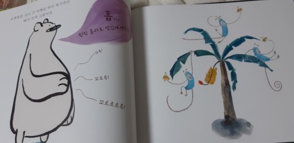 배가 고픈 북극곰은.. 원숭이들이 바나나를 먹는 모습을 보고 바나나를 먹지요.