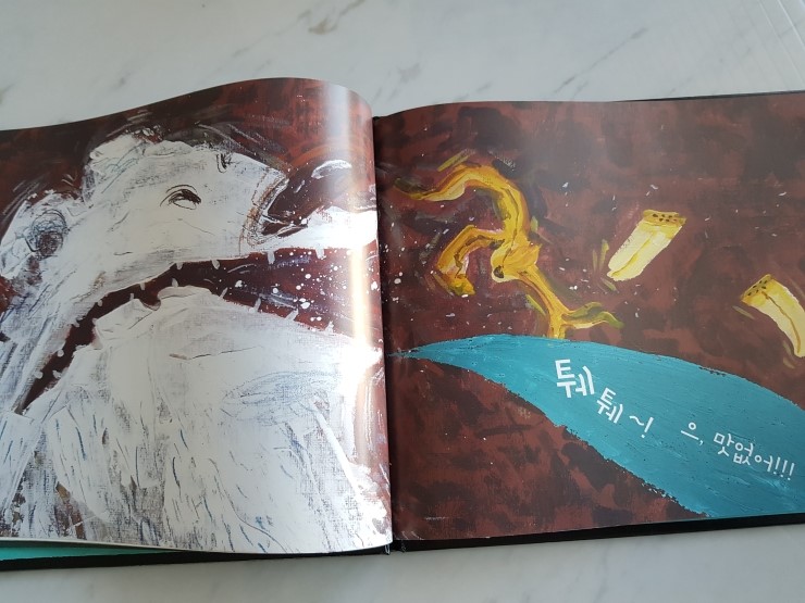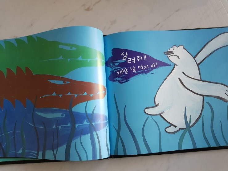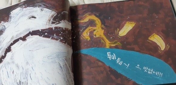 최고의 그림 작가 상 수상작인 멀리 멀리서 온 친구에요. 그림이 참 아릅다우면서도 몽환적인것같기도하고~ 물감으로 그린듯 표현된 그림들이 정말 멋져요~ ![]() 보통 그림책에는 잘없는 지은이 말이 있네요~ 이 책은 공자의 명언을 그림으로 풀어낸 책이래요. 벗이 멀리서 찾아오니 즐겁지 아니한가! 라는 뜼으로 친구의 소중함을 표현한 책이랍니다. 공자의 말씀을 옮긴 그림책이라니 어떻게 풀어냈을까 더 구윽ㅁ해지네요. ![]() ![]() ![]() 독특한 그림체가 눈에 더 먼저들어오죠`? 물감이 번진듯한 모습이 흥미로워요~ 어느날 북극에서 빙하를 타고 내려온 북극곰의 이야기에요. ![]() ![]() 더운 날씨에 괴로워하고 음식도 입에맞지않아 힘들어했죠. ![]() ![]() 바나나를 먹고 벳는 표정이 정말 리얼하죠?ㅋㅋ 자꾸 따라하게 된다는 ㅎㅎ ![]() ![]() 게다가 북극곰이 악어에게 쫒기다뇨~ 힘센 곰으로만 생각했던 북극곰이 다른동물에게 쫒기고 무서워한다니~ 참재밌죠? ![]() ![]() 그때나타난 친구들이에요.