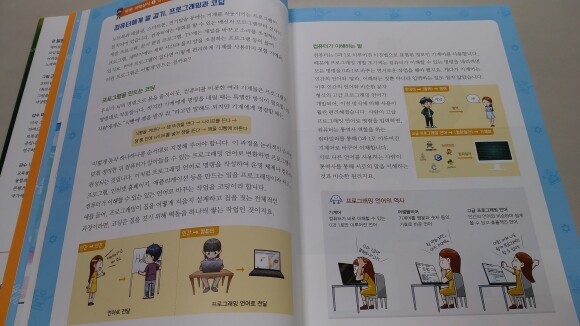 기계에 명령을 내릴 때 동작 하나하나를 순서대로 지정해주어야 한다고 해요. 프로그래밍 언어의 역사도 알 수 있고 컴퓨터가 어떤 역할을 하는지 쉽게 이해할 수 있을 것 같아요.