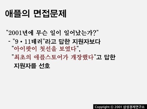 “구글보다 더 쿨한 곳이 있다면 바로 애플(Apple)이다. 그러나 애플에 입사하기 위해 넘어야 할 장애물은 만만치 않다.” “애플에 들어가기 위해서라면 거세라도 할 태세인 사람들이 차고도 넘치더군요.” (p.59)