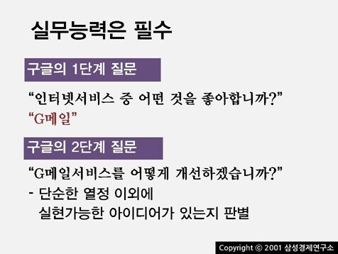 머리 무게를 재는 퀴즈를 내는 진짜 이유는 면접자의 근성을 보려고 한다는 것이다. 창의력 또한 인내력에서 발원하는 것으로 여긴다는 소개가 있었지만 사실 나는 이해할 수 없었다. 도대체 애당초 답도 없는 이상한 문제를 왜 내느냔 말이다.!!
