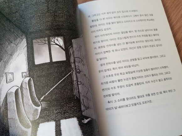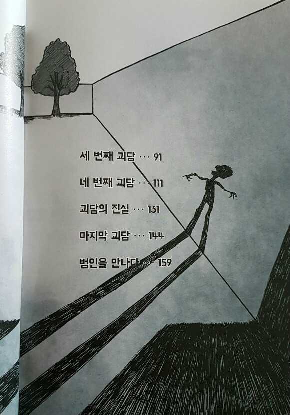 여러가지 괴담이 도는 학교분위기... 귀신이 있을까 확인 하기로 하는 마루와, 별남, 민석, 한나는 괴담의 정체를 밝히기로 하지요.. 과연 귀신은 있을까 조마조마하면서 보게 된다고 하네요. 아이도 스토리에 훅해서 책장을 한장한장 넘기게 된다고 하네요. 첫번째괴담 화장실의 목 꺾인 아이..생각만해도 끔찍하네요.
