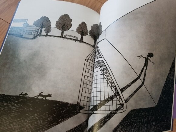 운동장 귀신 오후 4시만 되면 운동장에 나타나는 그림자귀신 그림자 귀신은 어디를 가르키고 있는데요 과연 어디일까요? 우리아이는 이부분이 제일 무섭다더라구요 생각만 해도 오싹오싹 한다고~~ 무서워서 그림에 손 닿이는것도 싫다고 책장도 저보고 대신 넘겨 달라고~~~ㅋㅋ