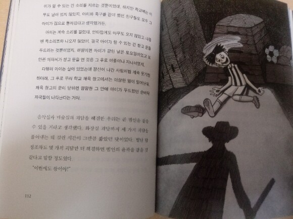 드디어 범인을 만나나요~~ 귀신손바닥이 나타난다는 창고.. 뜀틀아래의 범인이 남긴 힌트..소수로.. 수학어려워하는 아이는 보고는 우와 그러네요..ㅎㅎ 마지막괴담 운동장의 그림자.. 그때 찾아온 시은누나의 이야기.. 아픈아이 주희가 만든 괴담이었다고 하네요.. 그런데 실제로 일어나는 괴담사건들.. 주희를 둘러싼 진실은~~~ 탐정단이 해결하는 사건들속에 진실과 함께 미션이 있어서 풀이하면서 재미나다고 하네요.. 다 풀고 나서도 시사하는 바가 있는 별난탐정과 학교괴담사건.. 아이가 너무 재미있게 봤답니다.