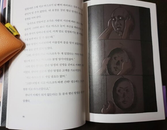 변기수조에 붙은 힌트가 날찾아와 였다는걸 밝혀낸 탐정단들. 대단했어요. 그러던중 두번째 괴담이 나오죠 미술실의 살아있는 석고 마스크.... 그래서 미술실로 향한 탐정단들..음각과 양각도 알게되네요..