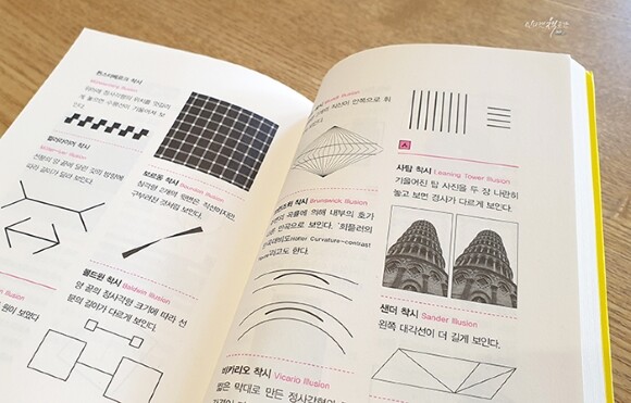 뇌 회로에 새겨지는 잘못된 해석 인지 편향. 우리가 하는 착각의 종류가 어찌나 많은지요. 착시 오류를 일으키는 50가지 항목과 인지 편향 용어 항목만 해도 225개나 수록되어 있습니다.