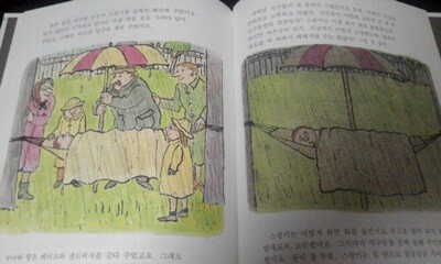 | 스핑키는 세상이 싫다. 모두들 자기를 이해해주지 않는 것 같다. 사랑한다는 엄마의 말도 귀담아 듣지 않고 해먹에만 누워 있다. 형, 누나, 할머니, 친구들 모두 스핑키의 기분을 풀어줄 수가 없다. 스핑키는 왜 화가 났을까? 어떻게 하면 화가 풀릴까? 답답했다. 속상했다. 그러다 아이스크림을 들고 온 광대 아저씨로 인해 스핑키의 마음은 녹아든다. 아이스크림을 먹고 싶었던 걸까? 단지 아이스크림 때문에 화가 풀린 걸까? 스핑키가 화가 난 이유는 식구들의 구박때문이었는데... 마지막 장면에선 광대로 분장한 스핑키가 가족들을 위해 파티를 연다. 스핑키의 파티로 인해 온가족은 웃음꽃을 피운다. 반전이 재미있다. 아이들의 마음을 돌아보게 만드는 동화다. 쉽사리 기분이 바뀌는 아이들, 작은 일에도 화가 나거나 깔깔거리는 아이들... 오늘 우리 아이들에게 한 번 물어보자. "왜 화가 났니?" 그리고 가만히 아이의 말을 들어봐야 겠다. 혹시 나도 모르는 사이에 아이가 나로 인해 상처받지 않았는지 점검해 봐야 겠다. |