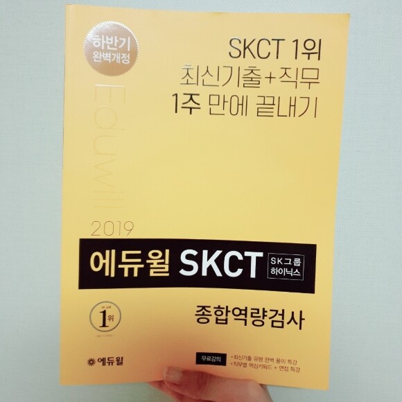 <2019 에듀윌 SKCT SK그룹 하이닉스 종합역량검사>는 SK시험을 준비하면서 가장 먼저 알게 되었고, 가장 많은 학생들이 구매하여 푼다는 것을 알고 그만큼 좋은 문제들이 있다고 믿었습니다.