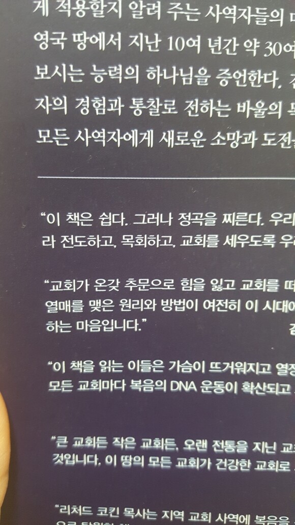 개인적으로 추천사를 쓴 분들을 신뢰하고 그분들의 책을 탐독하는지라 조금은 낯설게 느껴지는 영국의 교회성장(?), 리처드 코킨(?)에 대한 호기심으로 책을 읽어 가는데, 역시 추천인들의 추천사와 글이 지극히 정상적이지만 쉽게 간과했던 중요한 내용들을 상기하며 적용하는 포인트를 발견하는 시간이 되었다.