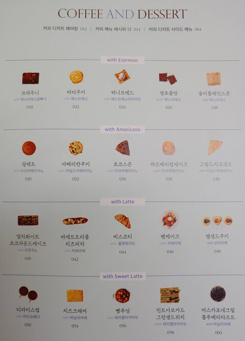 디저트가 제일 맛있어지는 순간, 입안이 가장 행복해지는 순간, 우리가 편안해지는 순간에 대해 알려주는 책 <디저트 페어링> 53가지 음료 메뉴 + 86가지 디저트 메뉴를 페어링한책. 커피, 홍차, 녹차, 허브티, 과일주스, 스무디 등...