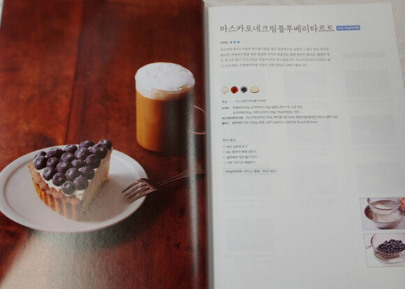 브라우니 중탕하기, 반죽하기, 굽기..단계별 사진과 설명이 자세히 나와있다. ![]() 바닐라 라떼와 잘어울리는 디저트 - 마스카포네 크림 블루베리 타르트. / 난이도 3. 15cm 원형 타르트틀 1개 분량.