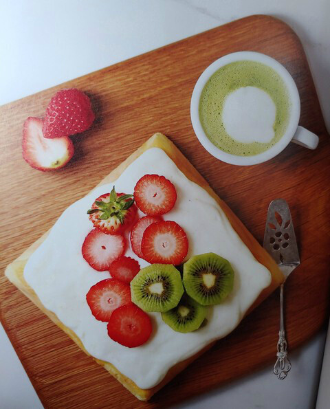 말차라떼와 잘 어울리는 옐로 스폰지 오픈 쇼트 케이크