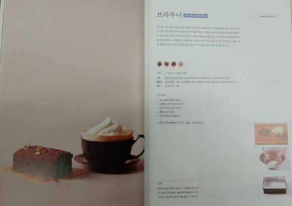 생크림을 가득 올린 에스프레소 꼼빠냐에는 밀크초콜릿과 다크 초콜릿을 섞어 만든 브라우니를 곁들이면 잘어울린다. 이 책의 좋은점은 디저트 메뉴마다 난이도 표시가 있다는 것. 재료에 따른 베이킹 분량과 준비사항에 대해 알려준다. 베이킹 메뉴에 대한 팁이 같이 있어 더 맛있게 취향대로 색다르게 만들어 볼수있다.