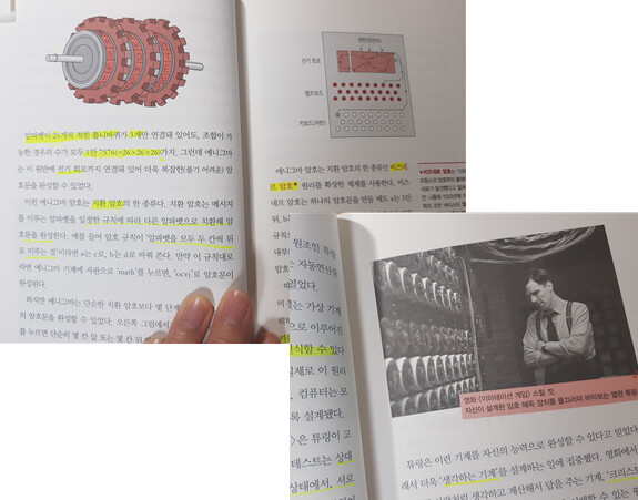 첫 이야기는 이미테이션 게임이란 영화에서 본 수학이야기 예요. 현대 컴퓨터의 초기 구조를 떠올린 수학자 앨런 튜링의 이야기가 나오는데, 제 2차 세계대전 때 독일의 암호를 해독하는 수학자들의 이야기가 나옵니다. 이 이야기는 많이 들었던 이야기라 초등학교 고학년인 막내도 재미있게 읽었던 부분이예요. 수학이 학교에서 배우는 것과는 다르게 현실에서 쓰이는 진짜 수학이야기를 들려주니 더욱 흥미있다고 하더라구요.