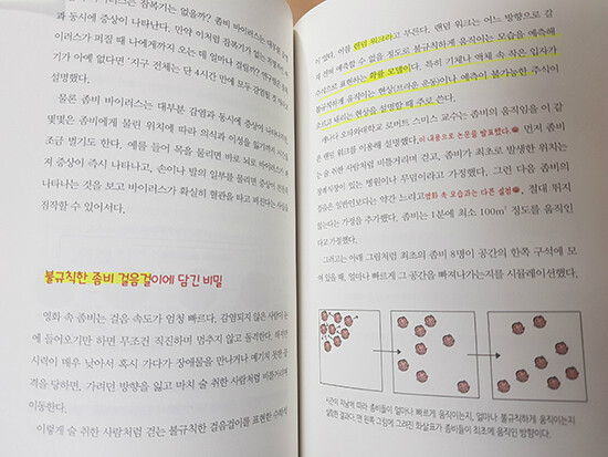 메이즈 러너 데스 큐어에서는 미로에서 탈출한 아이들이 다시 잡혀서 연구소에 갇혀 또다시 실험대상이 되는데요. 정말 흥미진진하게 봤던 영화이기에 책을 읽으면서 그 장면들이 다시 떠오른다고 하더라구요. 특히나 실험대상이 되던 민호나 마지막에 토마스의 피가 바이러스를 치료할 강력한 성분이 있다는 것을 알게 되는데요. 바로 바이러스를 치료할 백신을 개발하는 연구나 전염병 연구, 유전 관련 질병 연구 등 생명과 관련 분야에서 수학은 큰 역할을 한다는 것을 알 수 있어요. 이를 수리 생물학이라고 하는데, 수리 생물학에는 주로 방정식을 이용한다고 하니 현실에서 방정식은 언제 어떻게 쓰이는지 알게 되었네요.