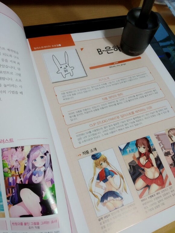 우선 책을 받고 캐릭터 3개를 각기 다른 작가가 구상부터 구도 , 스케치 정말 노하우라고 할수 있는 세세한 작업과정과 순서를 하나 하나 잘 따라 할수 있게 되어 있어서 좋았습니다. 클립스튜디오에 대한 툴적인 부분이나 내가 작업 하던 과정외에 다른 프로작가들이 작업하는 과정을 마치 수업하듯이 실습하는 느낌이라 좋았던거 같습니다. 물론 클립스튜디오와 싸이 툴에 대한 설명이지만 캐릭터 하나 정도는 포토샵으로 그리는 방법이나 과정도 하나 쯤 들어있었다면 더 좋았지 않았을까 하는 바램입니다. 기존에 포토샵으로 작업하는 작법서는 시중에 많이 나와있긴 하지만요 아무튼 다음번 서적도 한번 기대 해봅니다. 프로작각들의 캐릭터