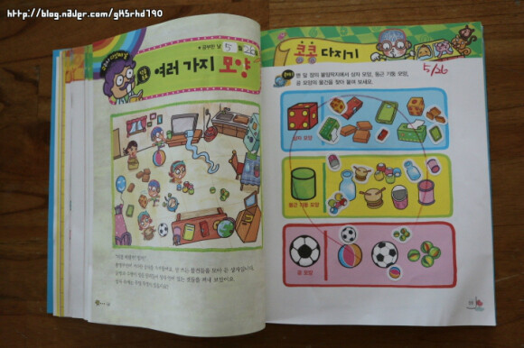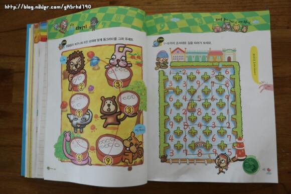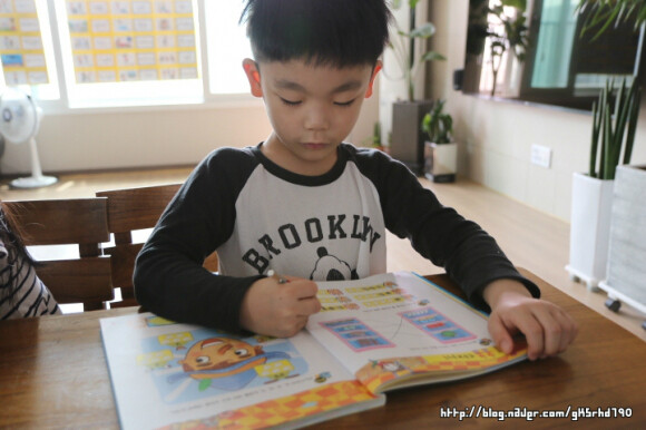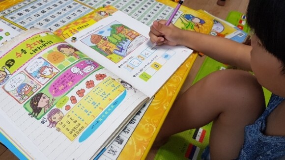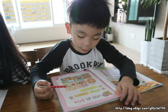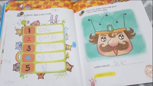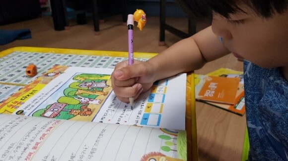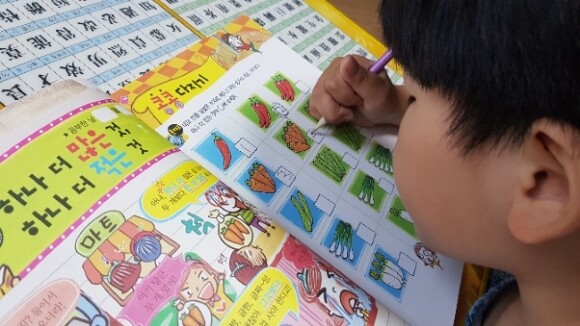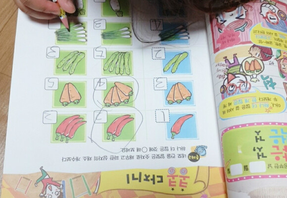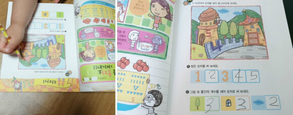 아이가 연필을 쥐고 풀어나가야 하는 문제들이 몇몇 눈에 띕니다.