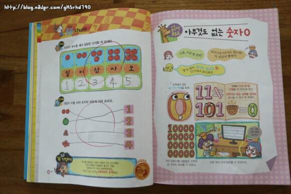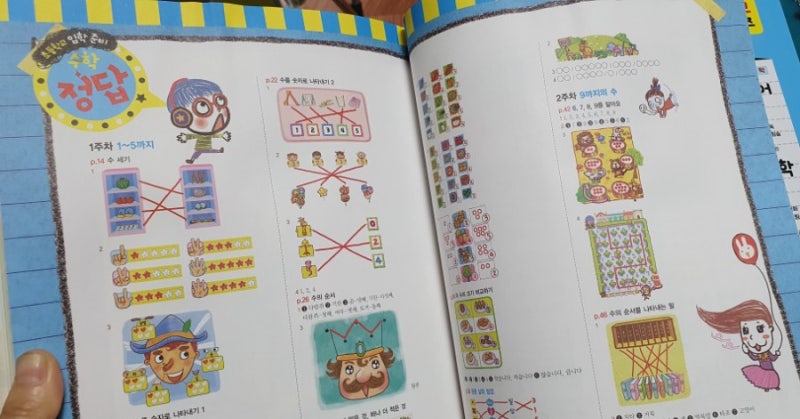 첫째 날에는 수 세기부터 시작했습니다 먼저 기초를 잡아주어 복잡한 수식을 접해도 거부감이 들지 않을 것 같아요! 그림이 재미있고 귀여워서 아이가 집중하는 모습을 많이 보였어요 숫자만 가득 있는게 아니라 그림과 글이 함께 있어 아이가 더 재밋어 했습니다