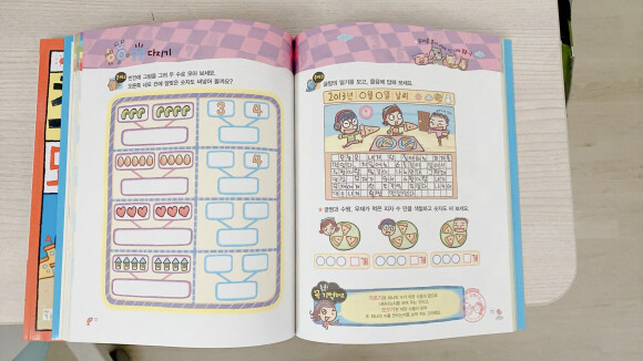 이 교재가 빛을 발하는 부분! 수학 개념을 잡아주는 만화가 포인트!!! 글짱, 수짱, 총명부인의 대화를 읽으면서 수학적 개념 뿐만 아니라, 다양한 상식도 자연스럽게 접할 수 있어요. 아! 국어실력도 업 되더라구요^^ 아이랑 대화를 번갈아가며 읽으니 아이가 더 집중하고 즐거워했어요~