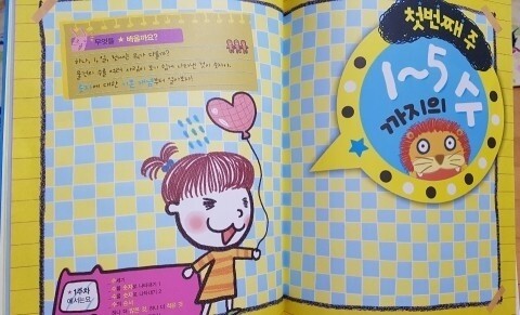 초1수학이라고 쉽다고 생각하기쉬운 수학의 개념을 먼저 배우고, 생활속의 소재를 이용해 문제를 내므로 아이들이 쉽게 풀 수가 있어요. 초등학생되는걸 바라는 우리 예쁜 딸^^ 첫장부터 그림책을 보는거처럼 너무 재미나요^^ 세명의 주인공이 나와서 이야기로 펼쳐지는 수학놀이^^ 왼쪽사진은 첫째아이 수학1-1교과서, 수학1-2교과서 대신 자습서의 목차이지요. 초1수학 전체를 그림책형식으로 재구성했으니 풀기아까울정도 아기자기하고 예쁘지요^^ 아빠랑 우리딸이 오순도순 앉아서 첫수업을 시작했어요. 첫번째주 1~5까지의 수. 아직은 수 세기를 손가락만으로 하는대요~ 스토리텔링식의 구성으로 즐겁게 문제를 풀다보면 손쉽게 수세기를 할꺼라 믿어지는걸요^^ 문제를 딸이 먼저 읽어주는 아빠는 아이가 수세기를 눈,코입을 이용해 수 세기의 개념을 익히네요.