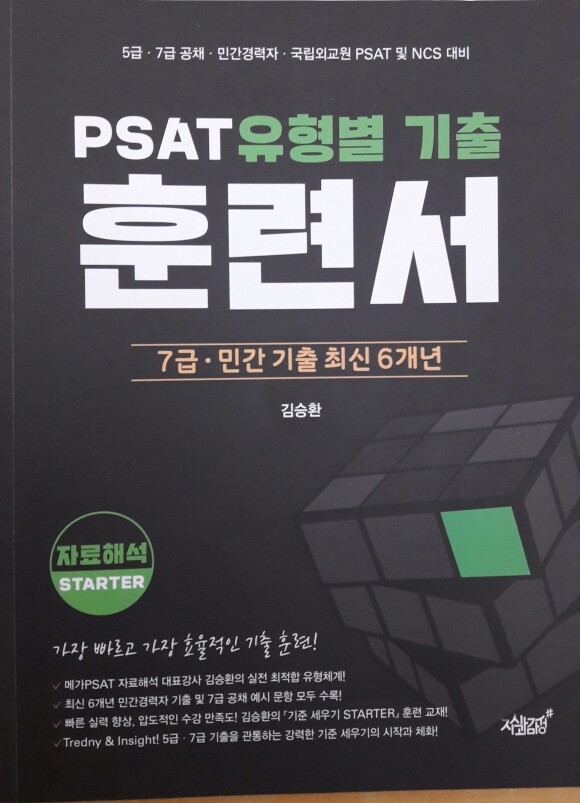 PSAT 강의를 듣기 위해 구입한 교재입니다. 자료해석이 어렵다고 해서 많이 걱정해서 선택한 교재인데, 유형별로 기출문제가 실어 있어서 효율적으로 기출 문제 훈련을 할 수 있습니다. 어떤 부분이 약한지 풀이하는데 시간이 오래 걸리는지 캐치할 수 있도록 도와주고 학습하는 기준을 설정하는데 도움을 많이 줍니다. 반복하면서 문제를 풀면서 익숙해지면 문제에 접근하는데 숙달해지게 됩니다.