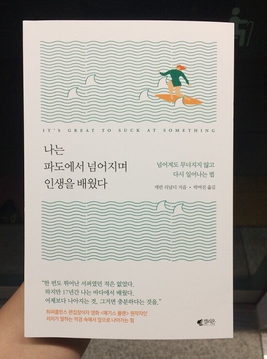 [나는 파도에서 넘어지며 인생을 배웠다]는 하퍼콜린스 편집장이자 20년간 에디터로 살아온 저자의 인생에 대한 이야기다. 마흔 살에 처음 서핑에 도전해서 제대로 파도를 타기까지 약 5년의 시간이 걸린 저자가 17년간 고군분투해 얻은 깨달음들. '나는 이렇게 해서 서핑을 잘 타게 되었다'라는 느낌의 성공담이 아니기 때문에 이런 이야기를 통해 무엇을 배울 수 있을 것인가 반문할 수도 있겠지만, 나는 못하는 것에 도전하고, 이제는 못하는 정도는 아니지만 그렇다고 뛰어난 능력을 지니게 된 것도 아닌 그녀의 상황을 지켜보면서 오히려 마음이 더 편안해짐을 느꼈다. 서핑에 대한 이야기뿐만 아니라 여러 가지 철학서와 심리학서, 인문학서의 문구들을 인용해 인생 전체를 아우르는 깊이있는 깨달음을 전달한다.