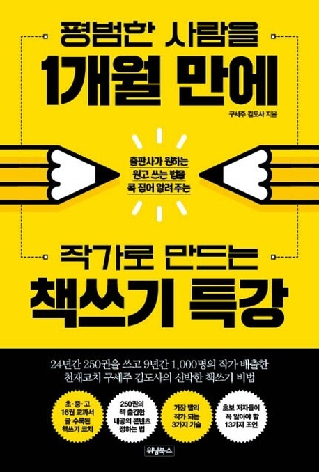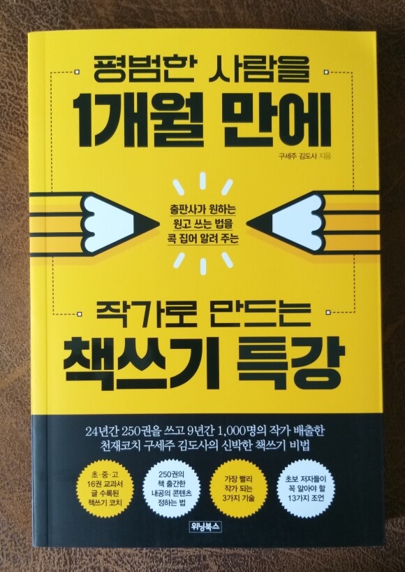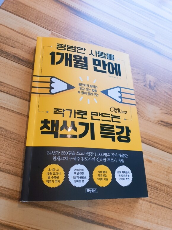 저자는 목숨을 걸고 코칭을 하더라. 저자는 ‘어떻게 하면 평범한 사람들에게 책을 쓰게 할까?’를 연구하면서, 한국책쓰기협회를 운영하고 있다. 저자의 실력은 가히 짐작하기 어렵다. 책쓰기계에서는 그를 도사 또는 구루라고 부른다. 책은 최고에게 배워서 써야한다. 나도 그에게 배워서 책을 썼다.