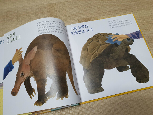 땅돼지 귀문지르기와 거북 등딱지 반들반들 닦기. 거북 등딱지 반들반들 닦기는 재미있어 보인다. 아이와 웃으며 한참을 이야기했던 페이지.