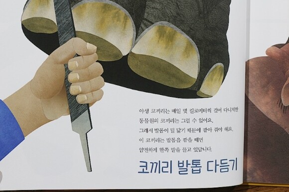 사육사들의 일은 막연하게만 우리가 지레짐작할 수 있는데 아이와 함께 읽으면서 '아~이런 일도 사육사가 하는구나'하며 부모도 느끼게 되었다.