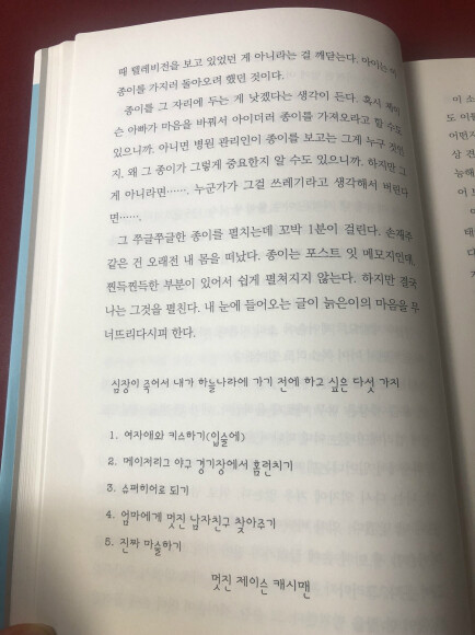 제가 받은 이 감동과 가슴 먹먹한 느낌을 제대로 글로 전달할 수는 없겠지만, 결론부터 말하자면 우연하게라도 이 <다섯 가지 소원>을 읽게 된다면 책이 제법 두껍지만, 절대로 앞부분만 읽고 중단하지 마세요~! 책의 진짜 감동은 독자를 끌어들이는 힘은 최소한 중반 이후부터 제대로 살아나니까요.