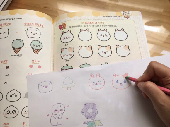 어머 ㅎㅎ 이렇게 귀여울 수가! 보자마자 반해버린 아기자기 손그림 그리기에요~!!! 그림그리기 똥손인 저에게ㅠㅠ 마치 미술선생님을 만난 듯 알려주는대로 쓰윽 그리기만 해도 똥손탈출~~?!!! 이럴수가!