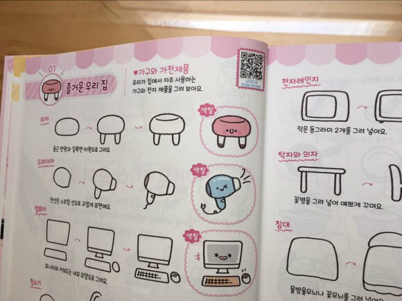 그리고 곳곳에 있는 QR코드로 그리기 영상을 보면서 따라 그릴 수도 있어요! 따라서 그리다보면 참 쉽죠잉~?^^