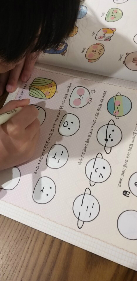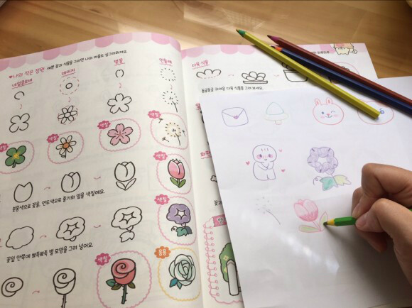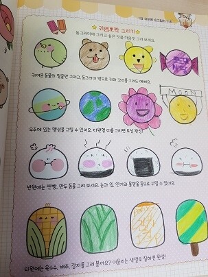 여자 아이들이라서 그런지 귀여운 캐릭터-카카오프렌즈, 몰랑이 등,,,캐릭터를 너무 좋아한다. 정말 많이 색칠공부 하도록 귀여운 캐릭터들을 많이 뽑아주었는데 첫째는 자기가 이제 그림을 그리더니 '잘 안그려져!'하면서 짜증을 내기도 했었다. 본인도 귀엽게 멋지게 그리고 싶었겠지만, 그게 잘 되지 않았나 보다. 그래서 이 책이 협찬 나왔을 때, 정말 너무 좋아할거 같다는 생각이 번쩍 들었다. 아니나다를까, 아이는 이걸 받자마자 너무나 신나하며 하나하나 그리기 시작하였다. 사실 보기만 해도 내가 너무 그리고 싶은 캐릭터들이 많았고, 하나같이 귀염뽀작해서 사실은 나도 그리기를 거들고 싶을 정도였다. 와~나도 이런 책 하나 있었으면 귀엽게 손그림 그리는거 터득했을텐데....요즘은 진짜 쉽고 재미있게 책도 잘 나오는 것 같다. 아기자기한 손그림 그리는 것도 나오고 말이다. 여튼 큰 아이는 한장한장 그리면서 어찌나 심혈을 기울이는지....연신 "엄마, 너무 재미있어!"라고 말하였다. 야~너무 그러지마. 나도 그리고 싶으니까....진짜 아이 그린 걸 보니 귀엽게 잘 그려지는게 너무 신기했다. 예를 들어서 동그란 원이 밑바탕이 되어있으면 거기다 채워넣는 형식이었다. 귀엽게 그리는 팁을 밑에다 글씨로 적어주었다. 어렵지도 않고, 아이들 눈높이에 맞춰 간단한 설명이 있는데 또 그게 이 책의 매력이다. 군더더기 없이 깔끔하게 아이가 그릴 수 있는 방법으로....그런데 그게 또 원이 여러개라 연습도 충분히 할 수 있었다. 아이가 좋아하는 책을 주니, 아이가 흥미를 가지고 이것을 하는 것을 보고, 더 아이가 뭘 좋아할까.. 생각하는 계기가 되었다. 그리고 나도 어깨 너머로 귀엽게 그리는 방법도 배울 수 있었다. 아이의 만족도 99% 충족한 것 같아 너무 기분이 좋았다. 귀여운 캐릭터 좋아하는 친구들 절대 후회하지 않아요. 한번 책을 가지고 연습해 보세요.^^