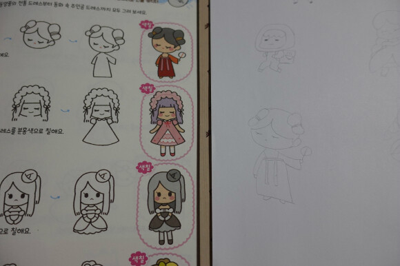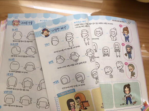 사람의 다양한 얼굴 표정과 동작, 다양한 직업을 나타내는 패션과 소품, 사계절 패션, 예쁜 드레스, 특별한 파티, 동화나라의 캐릭터들까지 너무 재미있게 그리고 표현하는 방법을 배울 수 있어요. 카툰이나 웹툰이 유행인 요즘 나도 한번 그려볼까? 싶은 자신감이 뿜뿜 생기기까지^^;