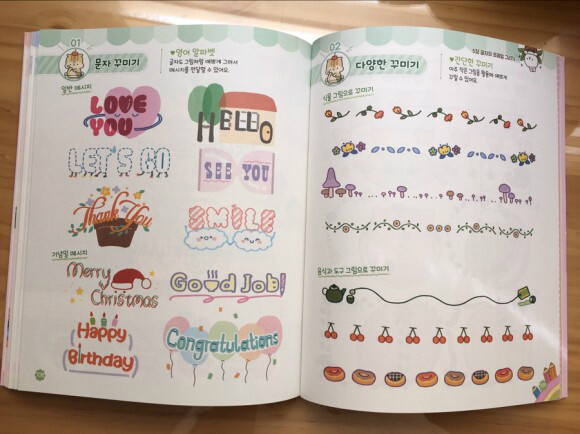영어 알파벳도 예쁘게 꾸며서 메시지를 전달할 수 있고 아주 작은 그림을 활용해 꾸밀 수도 있어요. 레이스나 리본, 동물이나 과일 모양으로 프레임도 만들 수 있네요 아기자기 손그림 그리기 책 한권이면 이 모든걸 나도 그릴 수 있다는~!! 어디가서 자신있게 뽐낼 수 있는 귀염뽀짝 그림들 한번 그려보고 싶지 않으세요? ㅎㅎ 저희집 9살 리니도 7살 쭈니도 쉽게 잘 따라 그리더라구요 누가누가 더 귀엽게 그리나 대결 한번 해 보려구요>_<