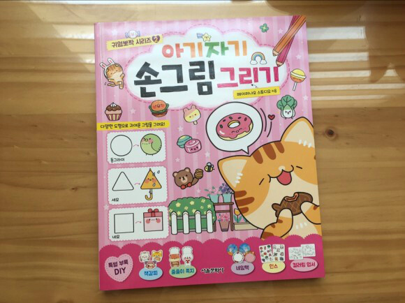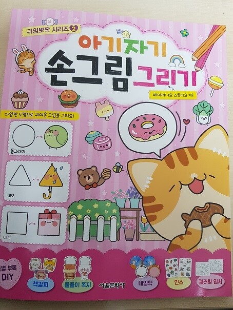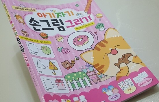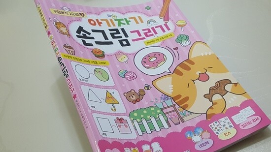 아이는 그림그리는 것을 좋아하지만 잘 그리지는 못해요. 그래서 엄마보고 "이거 그려줘~" 할 때가 많지요. 하지만 항상 아이와 붙어 있을수만도 없지요. 이럴 때 아이에게 권해본 책이 바로 <아기자기 손그림 그리기>랍니다. 이 책 말고도 그림 그리기 책이 두 권 더 있는데요, 하나는 너무 쉽고, 하나는 너무 어려웠어요. 초등학교 2학년이 아이는 이 책이 자기 수준에 딱 맞는다고 해요.(엄마 생각엔 그보다는 수준이 있는 것 같은데... 자기 책이라고 애정 듬뿍 준거 아닐까요 ㅋㅋㅋ)