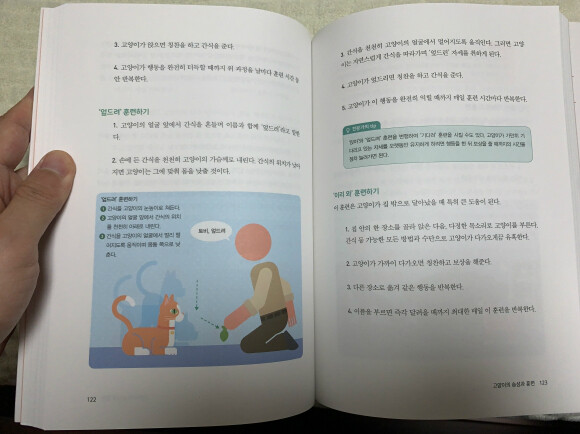 고양이 훈련시키기와 같은 부분들은 그림과 함께 나와 있어서 이해하기 정말 좋더라고요. 책 처음 부분에 나와 있는 고양이 품종에서도 제가 몰랐던 고양이들도 알게 되어서 좋았습니다. 제가 기르고 있는 고양이의 종류는 나오지 않아서 개인적으로 조금 아쉬운 마음도 있었지만 인기 고양이도 보고 책을 통해 고양이에 대해 많이 알 수 있어서 좋았습니다.