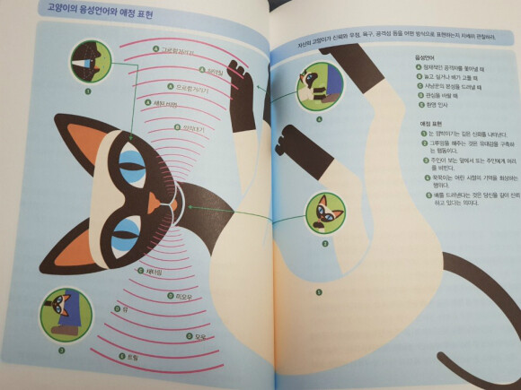 이 책에서 고양이의 음성언어와 몸짓언어를 소개하고 있는데, 이 언어를 파악해두면 고양이의 상태나 의사를 파악하는 데 도움이 된다. 이에 관해서는 주잔네 쇠츠가 쓴 ‘고양이 언어학’에서 비교적 자세히 다루고 있으므로 관심 있는 분들은 함께 읽으면 좋을 것이다.