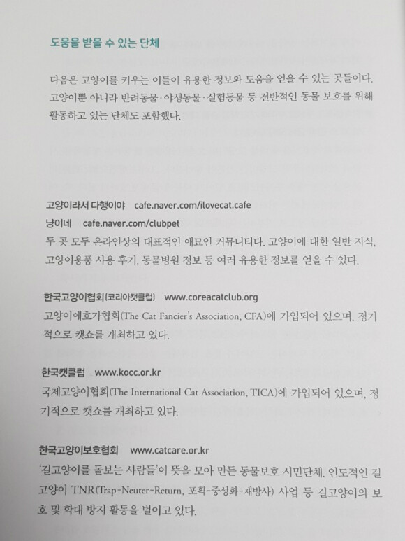 그리고 또 이책에 마음에 들었던 부분이 책 초반에 나에게 맞는 품종고르기라던가 혼혈묘를 분양받을 경우에 대한 이야기 그리고 자묘,성묘입양전 체크해보는 리스트도 있다는 점이었는데 물론 요즘 한국에서도 인식이 많이 바뀌어 품종따지지말고 무료분양받는걸 운동하고 있긴하지만 그럼에도 이런이야기를 충분히 다루어져야한다고 생각하기때문에 그런 의미에서 앞부분역시 나는 흥미롭게 읽을수있었다.