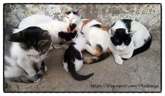 참고로 저희집에 함께 살고 있는 길냥이들이 많아서... 제일 왼쪽 아이만 빼고 아기 냥이를 포함한 네 마리는 자매예요!! 어미도 아닌데 젖먹이는 시늉을 하는 세번째 냥이가 막냉이랍니다.ㅎㅎ (그 외 성묘 3마리가 더 있습니다.) 자, 다시 책 이야기로 넘어가볼게요!!