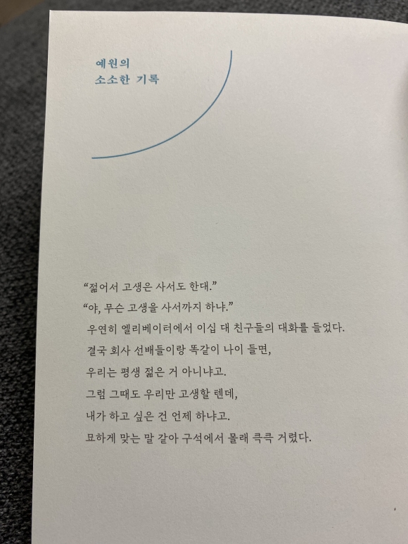 별 내용이 없다. 30분만에 후루룩 읽은 듯. 친구의 인생길 얘기를 들은 것 같은 기분이다. 아나운서 지망생 혹은 현직자라면 이 책이 조금 공감가거나 도움이 될 수 있을 것 같다. 다만, 낯선 길을 가는 사람의 입장에서 작가분을 응원한다.