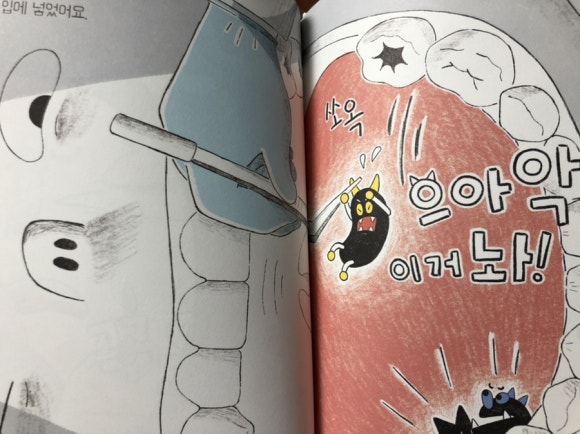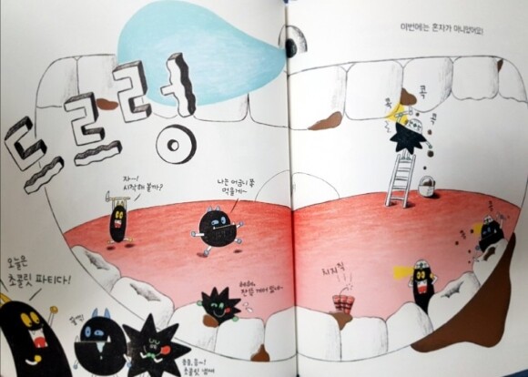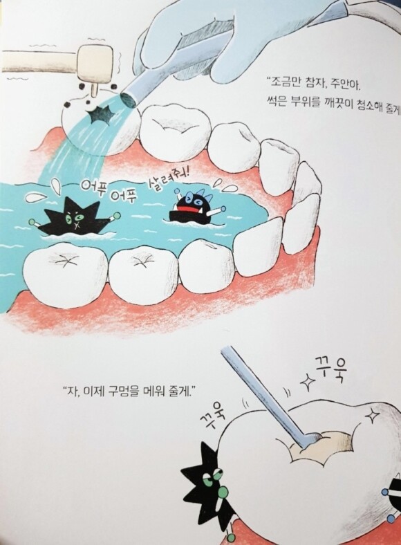 충치요괴는 이가 썩었을 때 치과에 가서 어떤 치료를 받는지 그림을 통해 상세하게 알려주는 게 정말 흥미롭더라고요.