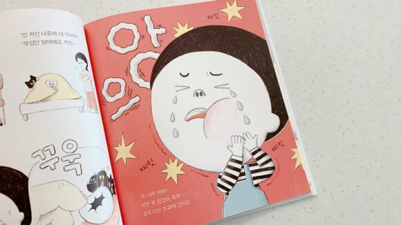처음엔 충치요괴의 등장에 겁을 먹는 듯 보였다. 등장인물인 주안이의 잇속에서 발견된 하나였던 충치요괴가 점점 늘어나더니 앞니와 어금니를 파먹고 커다란 구멍을 내었기 때문이다. 주안이처럼 달달한 간식을 좋아하지만 이 닦는 것은 싫어하는 우리 아이의 이도 이럴까 봐 오히려 내가 겁이 났다. 주안이의 볼이 크게 부을 정도로 치통이 심해져 결국 치과에 가는 장면에선 한숨이 나왔다. 미연에 방지하기 위해서라도 아이의 양치습관을 제대로 길들여줘야겠다는 다짐과 함께.