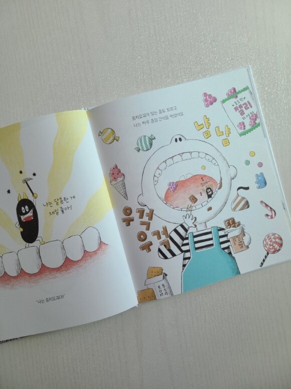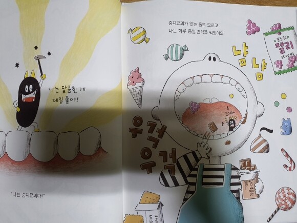 <충치요괴>는 유익하면서도 위트 있는 표현으로 아이들도 재밌게 볼 수 있는 책인거 같아요.