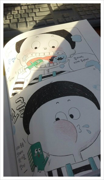 짜증구름을 먹는 괴물 이야기라던가, 충치요괴가 갉아먹는 이빨을 직접 보고나면 경각심이 드는 모양이에요. 제가 말했을때와는 사뭇 다른 반응이....ㅋㅋㅋㅋㅋㅋ