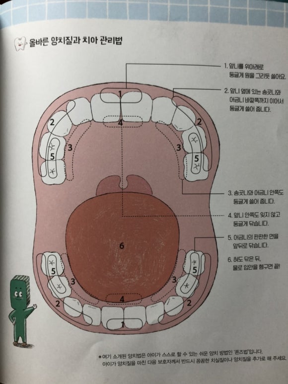 ![]() 충치가 무엇인지, 올바른 양치질 방법도 안내되어 있는 마지막 부분이 참 중요하죠 아이와 같이 읽으며 양치질을 하니 더 꼼꼼하게 하는 듯 했어요 양치교육을 위한 그림책으로 정말 좋은 책이에요