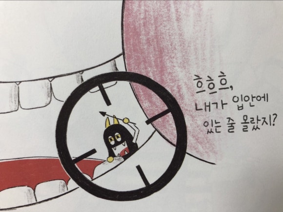 내 이를 공격할거라는 무시무시한 상상을 하게 된 아이들이 이를 잘 닦게 된다는거죠.