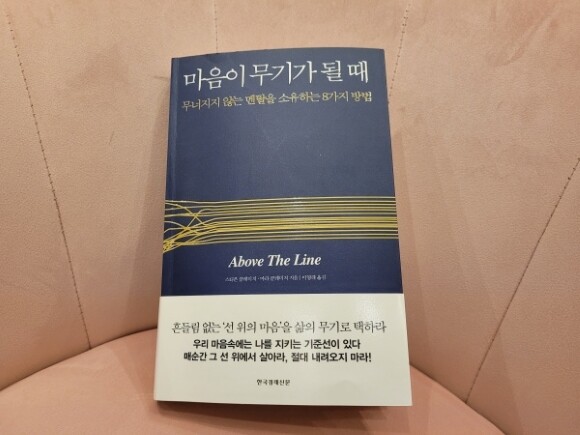 표지에 있는 ATL(Above The Line)은 BTL(Below The Line)과 함께 광고용어로만 생각했었는데 색다른 접근법이어서 호감이 갔습니다. 특정 선을 두고 선 위의 감정(마음)은 희망적이고 긍정적이며 발전적인 부분이라 보면 선 아래의 감정은 다소 부정적인 뉘앙스와 정체되는 느낌을 가지고 있다고 보여지네요. 굳이 선으로 구분한 이유는 내가 어느위치에 있는지를 스스로 확인해야 선 위에 있다면더 발전적으로 갈수 있을수도 있고 선 위에 존재하는 마음 두 가지, 겸손과 사랑은 마음을 무기로 바꾸는 8가지 행동으로 나타난다고 하는데요