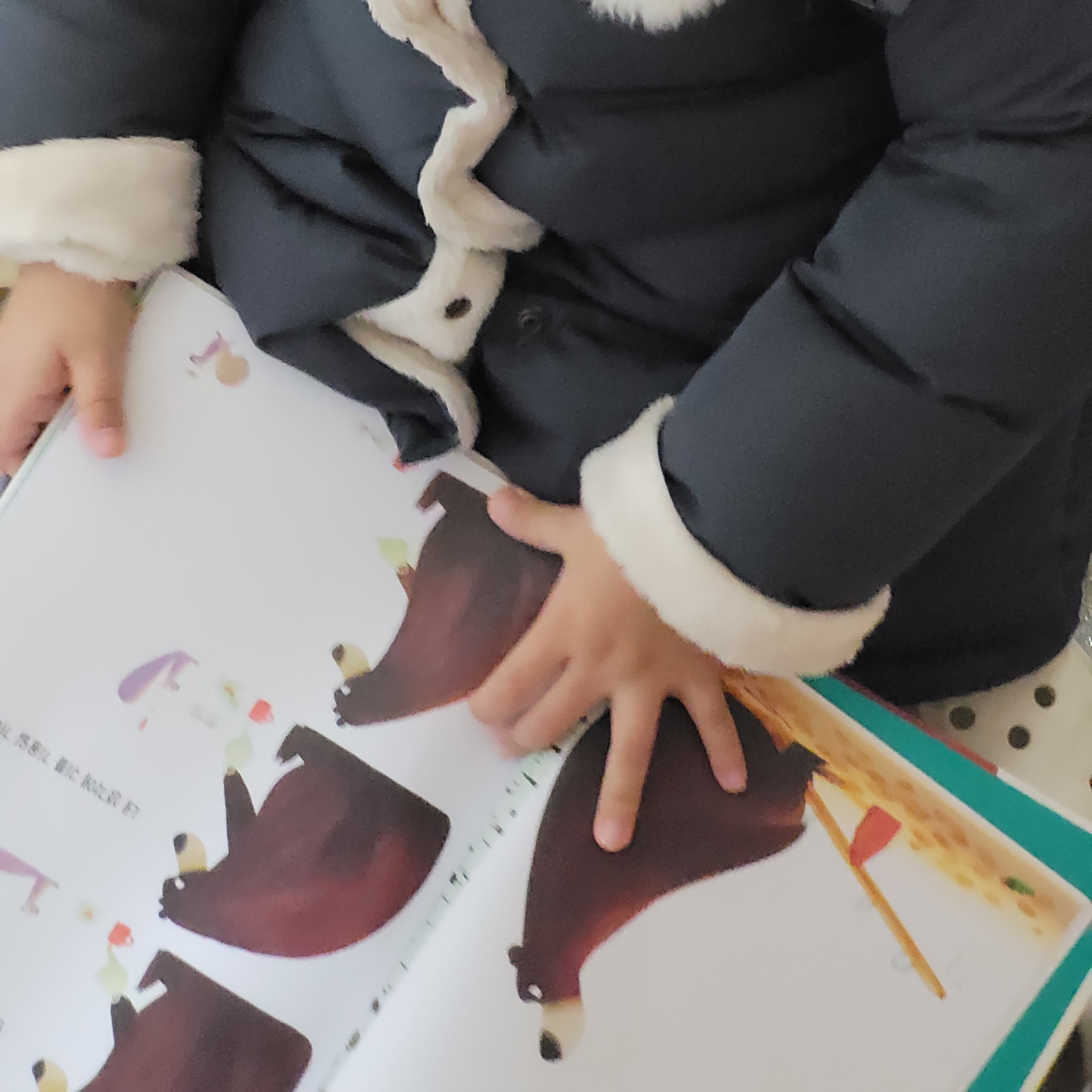그러는 동안 저는 먼저 들어와서 간식을 준비했죠. 아이가 신발을 벗겨 달라고 부르는 소리에 현관으로 갔어요. 빨리 손을 닦고 책을 읽어 달라는 부탁에 바로 책을 펼쳤어요.